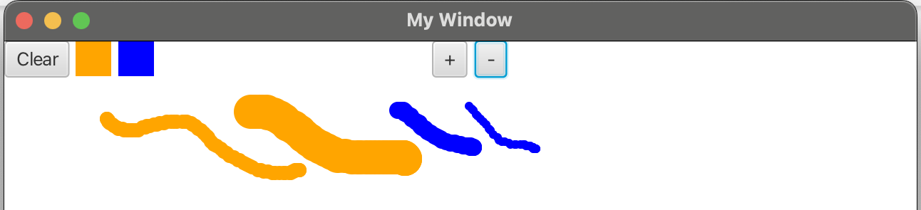 Do not set global variables. Create a Brush class instead with instance variables for color and size.