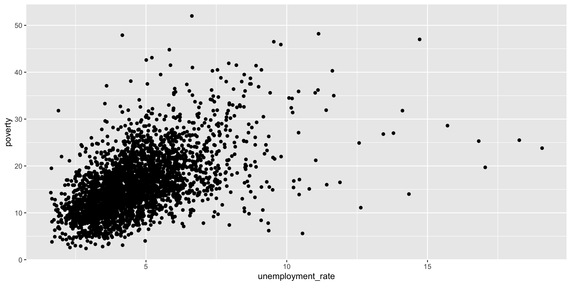 ggplot(aes(y = poverty, x = unemployment_rate)) +
