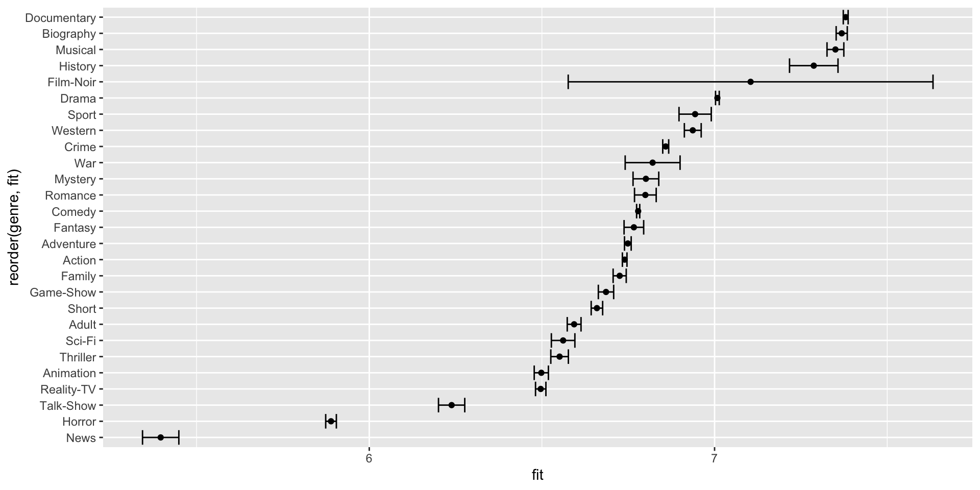 genreDocumentary 6.187e-01 4.984e-03 124.144 < 2e-16 ***